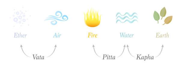Chaque Dosha comprend deux de ces cinq éléments : un élément principal et un élément secondaire.